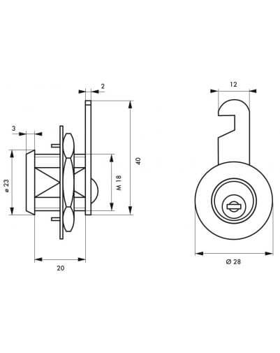 Dit type simplistisch THIRARD slot wordt meestal gebruikt voor het beveiligen van brievenbussen, zowel van metaal als van hout, maar is geschikt voor elk meubelstuk of kastje dat op slot moet. Bij het omdraaien van de sleutel wordt de sluitnok gedraaid tot hij voorbij de rand van de deur steekt, waardoor hij van binnenuit in het scharnier wordt vergrendeld. Dit nokkenslot is 20 mm dik en past op deuren tot 14 mm dik.