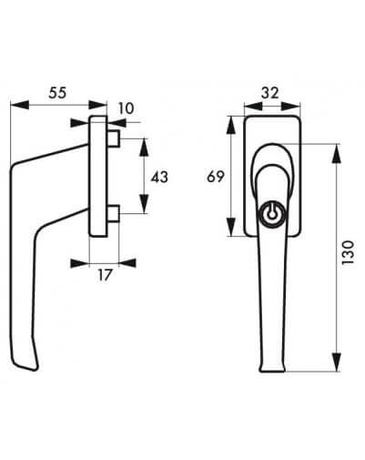 De Thirard raamgreep is gemaakt van aluminium en past op elk type dubbel glas. De bevestigingsschroeven zijn onzichtbaar weggewerkt, zodat het er modern uitziet. De handgreep is verkrijgbaar met een sleutelcilinder om het raam te vergrendelen. De greep ziet er ook erg elegant uit dankzij de champagnegeanodiseerde afwerking. De bevestigingsafstand tussen de schroeven is 43 mm en het stalen vierkant is 7 mm.