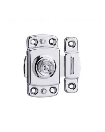 Deze meubelgrendel met draaiknop is een basistype automatisch meubelslot, waarbij de bediening van de vlakke schuifgrendel gebeurt door middel van het handig draaien aan een draaiknop. Dit toegepaste slot van THIRARD is geschikt voor meubeldeuren (kasten, bureaus, enz.), maar ook voor andere kleinere en lichtere soorten deuren. De installatie is heel eenvoudig dankzij de schroefbevestiging en de verchroomde afwerking geeft het een moderne look en een verhoogde weerstand tegen omgevingsfactoren, zodat dergelijke automatische sloten ook buiten kunnen worden gebruikt.