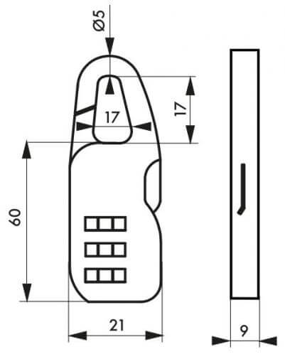 Lichaam en hek van gegoten legering. 3-rings mechanisme. Herinstelbaar cijfer, 1000 mogelijke cijfercombinaties.