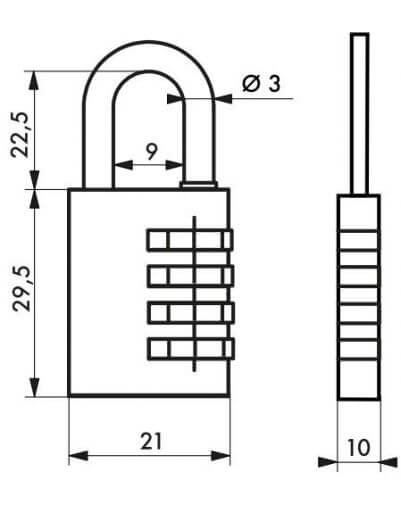 Bagageslot, met cijfer, Model 258, 21 mm, THIRARD