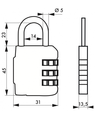 Gegoten legering. Vernikkeld stalen hek. Herinstelbaar cijfer, 3-cijferig mechanisme. In de eerste plaats ontworpen voor het beveiligen van bagage, maar ook handig voor het beveiligen van kluisjes, garderobes, enz. Dit veiligheidshangslot heeft een 3-cijferig, herinstelbaar codeslot.