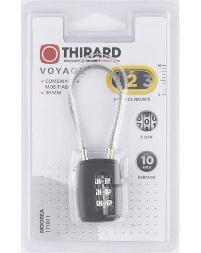 Het MOOREA cijferslot is ideaal voor het beveiligen van bagage, maar ook voor het beveiligen van lockers, garderobekasten, enz. In plaats van een zaklamp is het voorzien van een dunne, zeer sterke staalkabel, perfect voor smalle openingen (bijv. ritssluitingen). Dit veiligheidshangslot heeft een 3-cijferig codesluitsysteem dat 1000 mogelijke combinaties mogelijk maakt, traploos herinstelbaar. Dankzij de gegoten legering is dit ThIRARD bagageslot zeer licht van gewicht en het codeslot bespaart je extra sleutels.