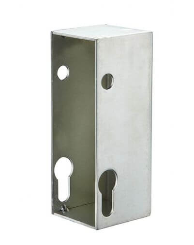 Deze extra beschermende behuizing is ontworpen als accessoire voor de 64 mm poortspilvergrendeling en beschermt het mechanisme van deze ondergrondse poortvergrendeling tegen extreme weersomstandigheden en temperaturen. De Thirard beschermingsbehuizing is voorzien van speciale gaten voor de spindel van de deurkruk en de veiligheidscilinder.