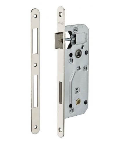 Binnendeurslot, insteekslot, 40 x 90 mm, met slot, gegalvaniseerd – geschikt voor badkamer-/toilet- of slaapkamerdeur, THIRARD