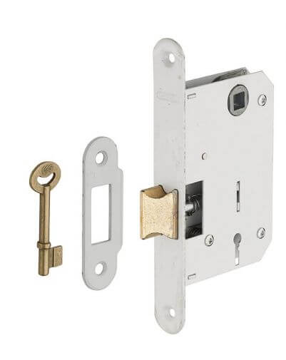 Binnendeurslot, insteekslot, 43 x 72 mm, 2 sleutels met groef, wit – geschikt voor badkamer-/toilet- of slaapkamerdeur, THIRARD
