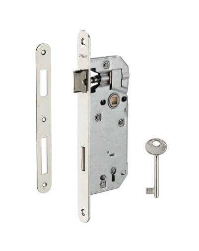 Dit verzonken slot met een as van 45 mm en een hartafstand van 90 mm, gemaakt van staal, is ontworpen voor binnendeuren voor privacy. Het is uitgerust met een gegroefd sleutelvergrendelingsmechanisme (er worden twee sleutels meegeleverd) en de handgrepen kunnen naar wens worden gekozen. Het kan zowel op rechts- als linksdraaiende deuren worden gemonteerd dankzij de omkeerbare grendel.