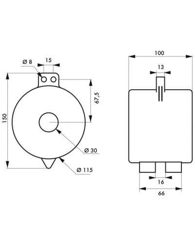 | Lichaamsafmetingen | Ø 115 mm x B 150 mm |