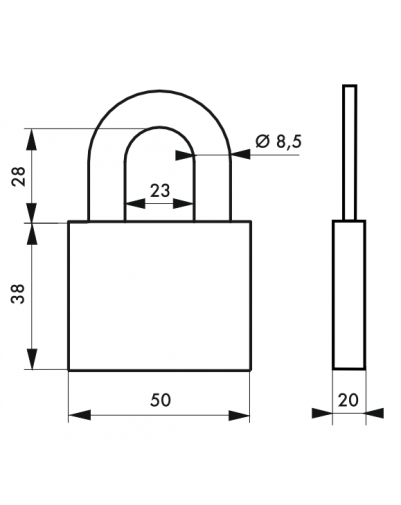Geverchroomd stalen behuizing. Poort van vernikkeld gecementeerd staal. Schijfmechanisme. Dubbel anker.4 sleutels