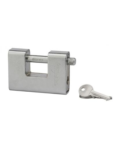 Het LAND BLIND bouwplaats hangslot is een zwaar veiligheidshangslot dat is ontworpen voor gebruik in de bouwsector om deuren en poorten, machines en apparatuur, bijgebouwen en containers, enz. te beveiligen. Het solide stalen huis heeft een extra gecementeerd stalen schild, waardoor het beter bestand is tegen boren en doorboren. De verchroomde stalen grendel is van het grendeltype en is zeer goed beschermd tegen doorknippen. Bij dit hangslot van THIRARD worden drie sleutels geleverd, om de toegang te delen of in geval van verlies. Het hangslot profiteert van de “captive key” functie, waarbij de sleutel alleen kan worden verwijderd als het hangslot is vergrendeld.