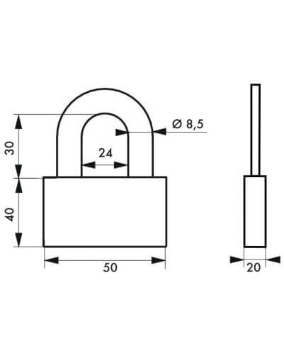 | Hoogte poort | 5 mm x H 30 mm, Ø 8 |