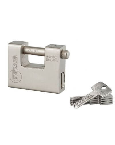 Het THOR bouwplaats hangslot is een zwaar veiligheidshangslot dat is ontworpen voor gebruik in de bouwsector voor het beveiligen van deuren en poorten, machines en apparatuur, bijgebouwen en containers, enz. Het solide verchroomde stalen huis biedt een hoge schokbestendigheid. Het gecementeerde stalen hek is van het grendeltype en is zeer goed beschermd tegen doorknippen. Bij dit Thirard hangslot worden vijf omkeerbare, gestempelde sleutels geleverd, om de toegang te delen of in geval van verlies van een sleutel, waardoor ze zeer handig in gebruik zijn.
