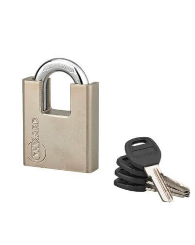 Het QUADRA bouwplaats hangslot is ontworpen voor gebruik in de bouwsector om deuren en poorten, machines en apparatuur, bijgebouwen en containers, etc. effectief te beveiligen. De behuizing van dit veiligheidshangslot is gemaakt van vernikkeld staal, wat een zeer hoge schokbestendigheid geeft, en de hogere “schouders” bieden bescherming tegen knallen van de poort. De dubbele kogelsluiting en het messing rotormechanisme zorgen voor een hoge mate van inbraakwerendheid. Dit hangslot van ThIRARD wordt geleverd met vier voorgevormde omkeersleutels voor eenvoudige bediening.