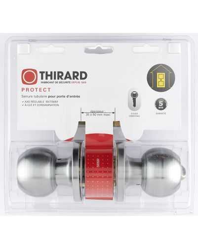 Dit type ThIRARD nachtschoot is ontworpen voor mensen die een klein, decoratief slot voor hun voordeur willen. De bolvormige knopvormige hendels van dit buisslot zijn anders dan de gebruikelijke “L”-vormige hendels, en het sluitmechanisme is zeer compact, waarbij de grendel wordt ontgrendeld door de knop half te draaien. Het slot kan ook met een sleutel worden vergrendeld, met een 5-pins cilinder die in de buitenste handgreep is geïntegreerd. Dit speciale slot is geschikt voor buitendeuren met een dikte tussen 35 en 50 mm. Buitenkruk met 5-pins veiligheidscilinder. Binnenkruk voorzien van sluitknop. Omkeerbare grendel, met veiligheidsvoorziening, halve draai vergrendeling. Rechthoekige voorplaat. Vlakke tegenplaat. 70 mm as. 3 sleutels van vernikkeld staal. Andere versies:Buisvormig slot, goudkleurig,Buisvormig slot, verchroomd