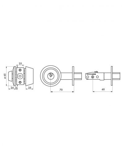 Extern vast handvat, gemaakt van staal, met 5-pins veiligheidscilinder. Draaibare vergrendelingsknop binnenin. Bout met anti-snijbeveiliging. Rechthoekige voorplaat. Vlakke tegenplaat. 60/70 mm verstelbare spindel. 3 vernikkelde stalen sleutels.
