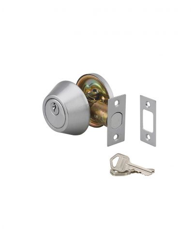 Buisvormig slot, mat verchroomd, externe vaste handgreep met 3-sleutel cilinder, interne vergrendelknop, verstelbare spindel 60-70 mm