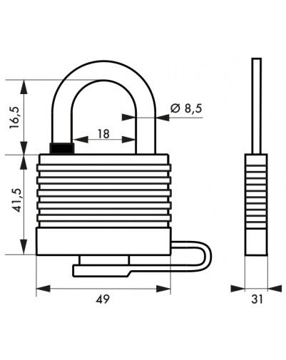 Dubbele vergrendeling met roestvrijstalen kogelslot. Stiftmechanisme. Twee vernikkelde messing sleutels met PVC bescherming.