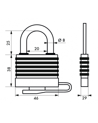 Lamellenhuis van staal. Poort van vernikkeld gecementeerd staal. Pin mechanisme. Dubbele vergrendeling. Het sleutelslot is ontworpen voor gebruik buiten gebouwen om deuren en poorten, machines en apparatuur, bijgebouwen en containers, etc. effectief te beveiligen. Het gelamelleerde, stalen huis geeft het een zeer hoge schokbestendigheid en een hoge mate van veiligheid
