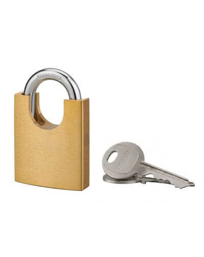 Het SHOULDER sleutelhangslot is ontworpen voor gebruik buiten gebouwen, voor het effectief beveiligen van deuren en poorten, machines en apparatuur, bijgebouwen en containers, enz. De messing behuizing geeft dit veiligheidshangslot een hoge sterkte en de vernikkelde, gecementeerde stalen loop is zeer veilig tegen inbraakpogingen, met anti-inbraakbescherming dankzij de “schouders” van de behuizing. Bij dit hangslot van Thirard worden twee sleutels geleverd, die kunnen worden vermenigvuldigd afhankelijk van het model.