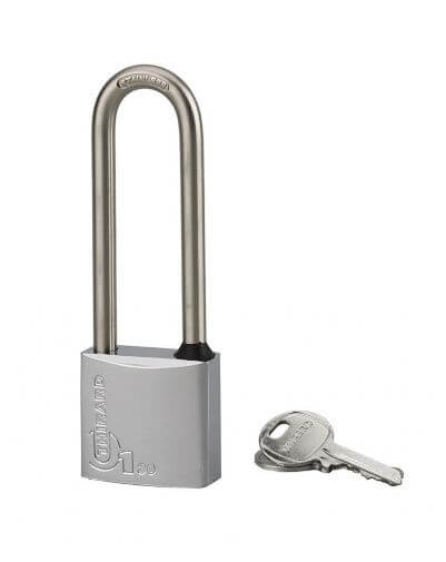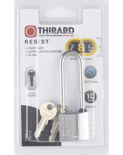 Het TYPE 1 sleutelhangslot met antiroestbescherming is ontworpen voor gebruik buiten gebouwen, om deuren en poorten, machines en machines, bijgebouwen en containers, enz. doeltreffend te beveiligen. De antiroestbescherming maakt dit veiligheidshangslot weerbestendig (regen, sneeuw) en de behuizing is voorzien van een waterafvoeropening. Bij dit hangslot van THIRARD worden twee sleutels geleverd, om de toegang te delen of in geval van verlies van een sleutel. Op verzoek kunnen meer sleutels worden geleverd. Dit hangslot voor buiten is gemaakt van massief messing en biedt een hoge slagvastheid.