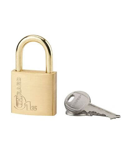 Het TYPE 1 sleutelhangslot met antiroestbescherming is ontworpen voor gebruik buiten gebouwen, om deuren en poorten, machines en machines, bijgebouwen en containers, enz. doeltreffend te beveiligen. De antiroestbescherming maakt dit veiligheidshangslot weerbestendig (regen, sneeuw). Bij dit hangslot van THIRARD worden twee sleutels geleverd, om de toegang te delen of in geval van verlies van een sleutel. Op verzoek kunnen meer sleutels worden geleverd. Dit hangslot voor buiten is gemaakt van massief messing en biedt een hoge slagvastheid.