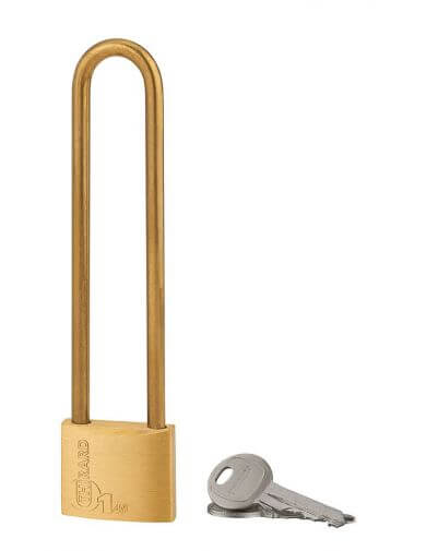 Het TYPE 1 sleutelhangslot met antiroestbescherming is ontworpen voor gebruik buiten gebouwen, om deuren en poorten, machines en machines, bijgebouwen en containers, enz. doeltreffend te beveiligen. De antiroestbescherming maakt dit veiligheidshangslot weerbestendig (regen, sneeuw). Bij dit hangslot van THIRARD worden twee sleutels geleverd, om de toegang te delen of in geval van verlies van een sleutel. Op verzoek kunnen meer sleutels worden geleverd. Dit buitenhangslot is gemaakt van massief messing en biedt een hoge slagvastheid.