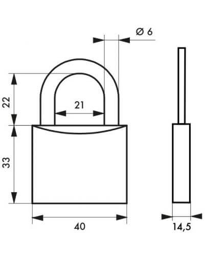 Buitenliggend slot, met sleutel, TYPE 1, 40 mm, Hoge poort