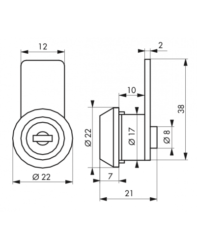 Dit type slot wordt meestal gebruikt voor het beveiligen van brievenbussen, zowel van metaal als van hout, maar is geschikt voor elk meubelstuk of kastje dat op slot moet. Bij het omdraaien van de sleutel wordt de sluitnok gedraaid tot hij voorbij de rand van de deur steekt, waardoor hij van binnenuit in het scharnier wordt vergrendeld. Dit nokkenslot heeft een diameter van 22 mm.