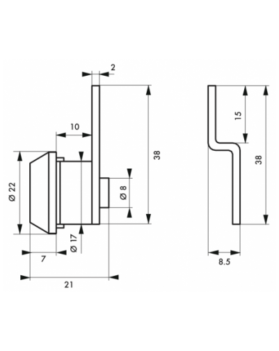 Dit type slot wordt meestal gebruikt voor het beveiligen van brievenbussen, zowel van metaal als van hout, maar is geschikt voor elk meubelstuk of kastje dat op slot moet. Bij het omdraaien van de sleutel wordt de sluitnok gedraaid tot hij voorbij de rand van de deur steekt, waardoor hij van binnenuit in het scharnier wordt vergrendeld. Dit nokkenslot heeft een diameter van 22 mm.
