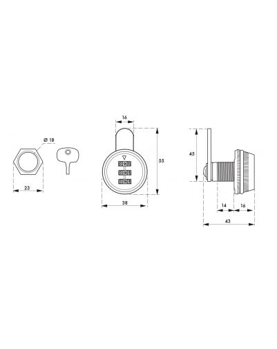 Het is uitgerust met een 3-cilinder codeermechanisme, waarmee een code kan worden ingesteld uit 1000 mogelijke combinaties.