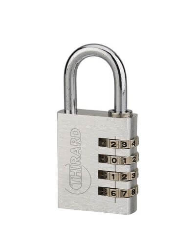 Het ThIRARD TYPE 1 ALU codeslot is ontworpen voor gebruik binnen gebouwen om kasten en lades, kisten en kisten, deuren van kamers of bijgebouwen, etc. effectief te beveiligen. Het heeft een viercijferig codeslotsysteem dat 10.000 mogelijke combinaties toestaat, traploos herinstelbaar. Dit veiligheidshangslot is gemaakt van aluminium en is licht, sterk en duurzaam.