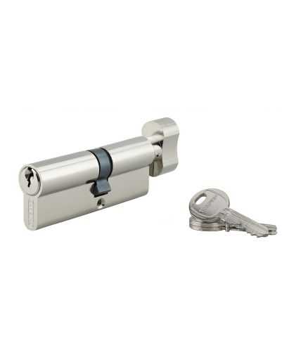 Cilinder 30 x 50 mm, met knop, vernikkeld, HG5, 3 sleutels