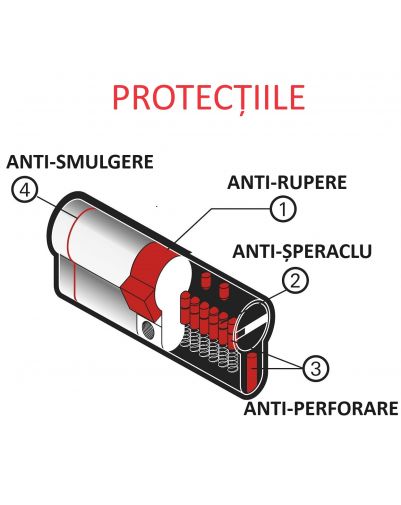 - Tweede beveiligingsniveau – anti-sluiting: het aantal, de vorm en de organisatie van de pinnen voorkomen dat de cilinder met een bout kan worden geopend.