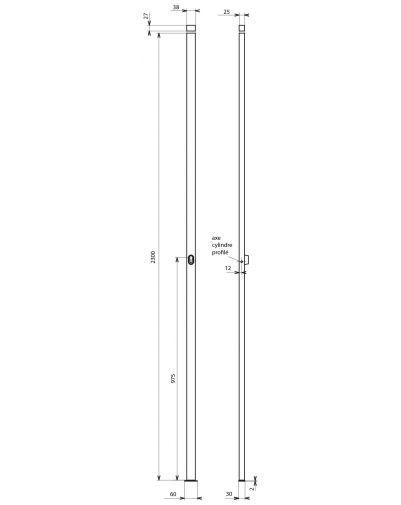 Cilinder met cilinder, SLIM, 2-punts, H 2300 mm, zilver