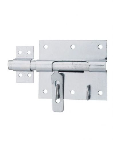 Deze deur- of poortgrendel met schuifgrendel is de eenvoudigste vergrendeling om binnendeuren van een gebouw of meubel of buitendeuren en bijgebouwen (garage, kelder, enz.) gesloten te houden. Gemaakt van staal en met een gegalvaniseerde afwerking, is deze toegepaste grendel betrouwbaar in de loop der tijd en de installatie is zeer eenvoudig dankzij de grendelsluiting. De trekknop kan worden vergrendeld in een van de twee beugels op de hoofdplaat, in open of gesloten stand, als er een hangslot wordt gebruikt – waarvan de grendel in de beugel vergrendelt, waardoor de trekknop wordt geblokkeerd.