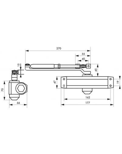 Deurdemper, hydraulisch ECO (deuren tot 30kg), 90° stop