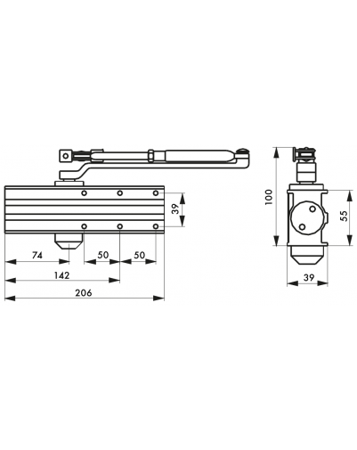 Deurdemper, hydraulisch, omkeerbaar ontwerp, kracht 3