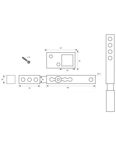 De ThIRARD slagboom is gemaakt van gecementeerd staal en is zeer stevig en veilig. Het beweegbare schuifgedeelte en het vaste lichaam hebben een vierkante doorsnede, waardoor ze zeer goed beveiligd zijn tegen breuk. In gesloten positie wordt deze Thirard grendel vergrendeld door een hangslot te plaatsen in een van de gaten in het vaste lichaam. In vergrendelde positie is deze toegepaste bout 21,5 cm lang en zijn de bevestigingsschroeven verborgen. Deze grendel kan ook aan het poortframe worden gelast voor extra beveiliging tegen inbraak.