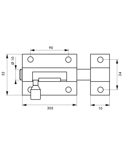 Behuizing van gegoten legering. Ronde schuifgrendel. Ronde knop