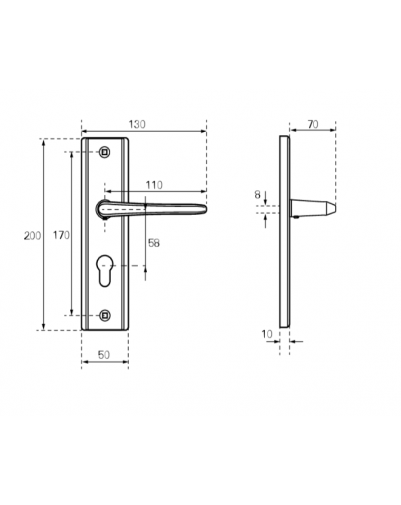 Deurgrepen met zadel voor deuren ELIADE E170, interax 58, met cilinderprofiel, gesatineerd nikkel, THIRARD