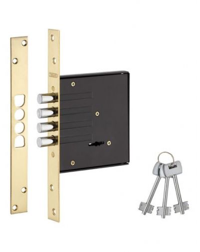 Gestempelde stalen doos. Stalen plaat met vierkante uiteinden. Omkeerbaar. Gegalvaniseerde legering schroef. Stalen platte inbus. 3 steeksleutels
