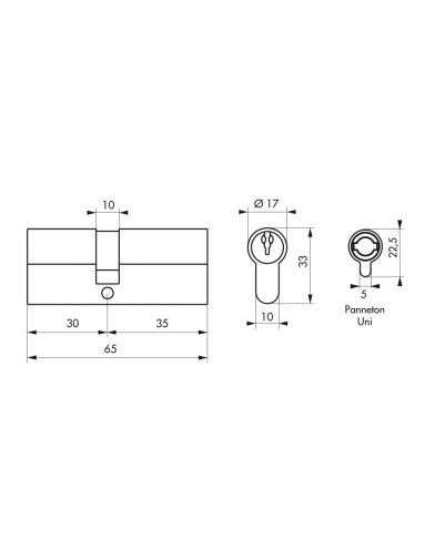 Deze Europese profielcilinder van THIRARD wordt gekenmerkt door de UNI-nok (verkleind). Deze is kleiner dan de standaardnokken van gewone cilinders en is geschikt voor brootsen die zo’n 40-50 jaar geleden werden geproduceerd. Het 5-pins mechanisme zorgt voor een goede inbraakbeveiliging. De sleutel kan in beide richtingen worden gebruikt, omdat de cilinder twee ingangen heeft.