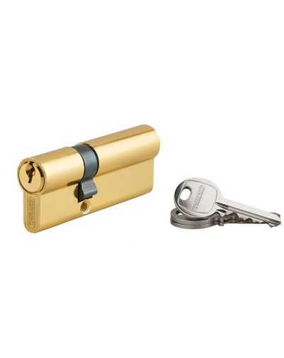 Aluminium cilinder met Europees profiel, messing afwerking. 5-pins mechanisme. Anti-migratienok. 3 stalen sleutels.