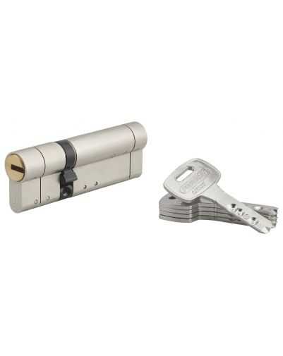 Europese profielcilinder van messing, afwerking satijnnikkel. Mechanisme met 3 of 4 dubbele telescopische pinnen, plus een magnetische pin. Bescherming tegen doorboren. “Valstift” elementen tegen het openen met een bout. Bescherming tegen breken. Anti-stootbeveiliging. Anti-tamper cam. 5 vernikkelde omkeerbare sleutels met eigendomskaart (kopieën van sleutels kunnen alleen in de fabriek worden gemaakt).