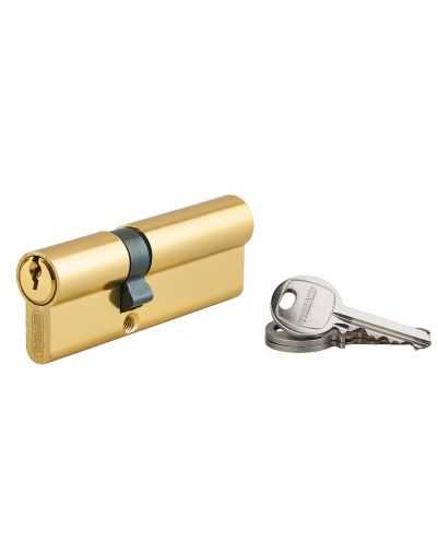 Aluminium cilinder met Europees profiel, messing afwerking. 5-pins mechanisme. Anti-migratienok. 3 stalen sleutels.