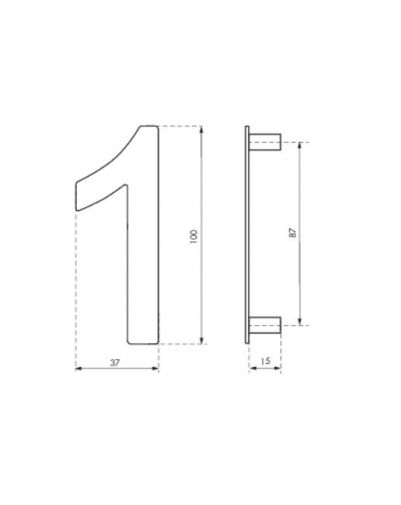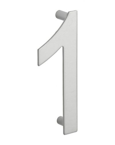 Deurnummer, cijfer “1”, schroefbevestiging, roestvrij staal