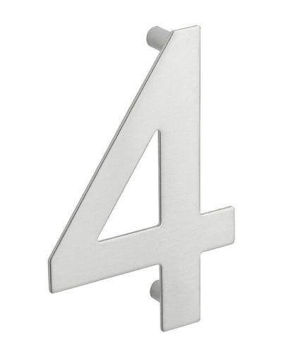Deurnummer, cijfer “4”, schroefbevestiging, roestvrij staal