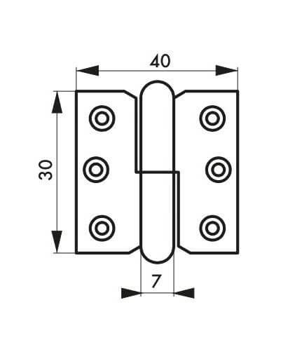 Deurscharnieren, 30 x 40 mm, rechts, vernikkeld