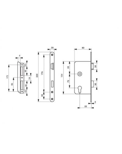 HomeWinkelIngebedde slotenDeurslot 55 x 72 met cilinderprofiel, links openend, THIRARD