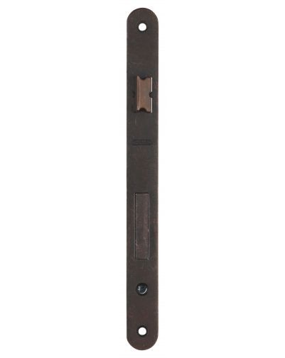 Het slot is gemaakt van reliëfstaal. De tegenplaat en voorplaat hebben afgeronde uiteinden.